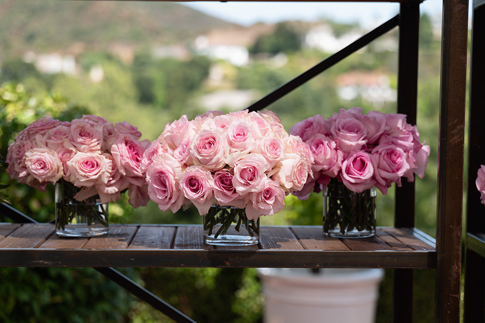 As practical as the flowers are stunning, the non- floral/fauna medley of tools that build a BBFB make the experience equally delightful for guests and stress-free for hosts. Featured glass vases are the base of these arrangements, our unique grid lid design allows for ease in arranging and designing.