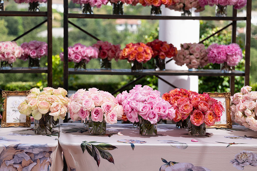 From perfectly petaled roses, pom-pom size peonies, a plethora of specialty flowers — think garden roses, ranunculus, anemones, calla lilies, hydrangea, delphinium to name a few— and lush greens, there are seemingly endless BBFB design options so that no two presentations are ever alike. Custom menus are a collaborative process to showcase an event’s vibe in its space, the flowers marrying form and function simultaneously as displays present equal part decor and instrument.